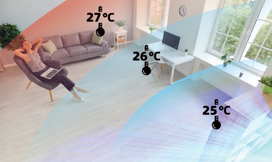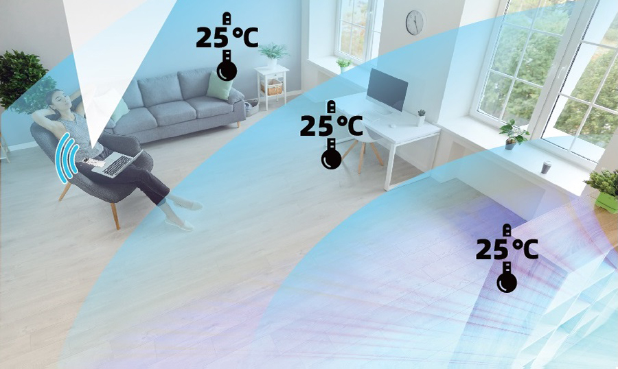 The innovative temperature sensor in the remote control allows the air conditioner to operate at a temperature closer to the human body for more accurate temperature control.